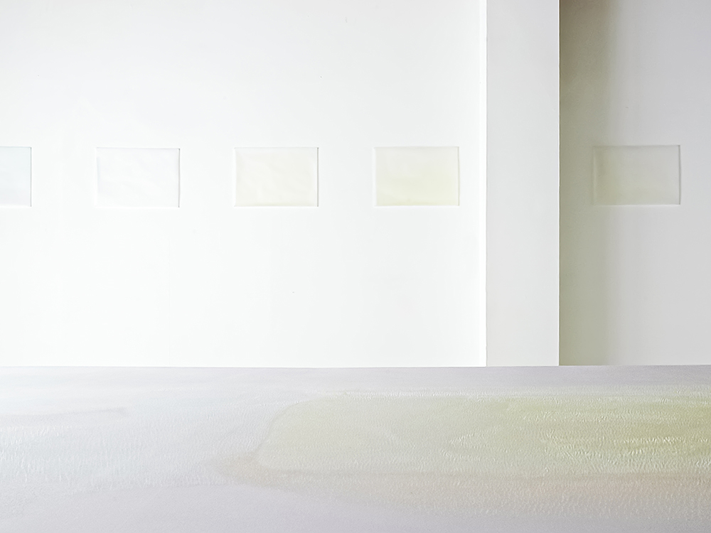広大な庭園の構想の展示。視界に広がる草や花や木々、砂や石、そして空-は私たちの現代生活での狭くなったまなざしを解放する。また、所々で配されるアクリルの石は光を反射して全体に瑞々しさを持ち込む。どこまでも透きとおる透明な風景。