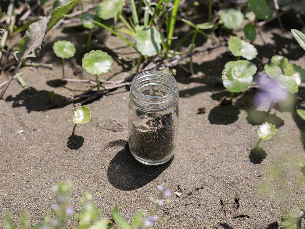 Pigment made from soil collected near the Tama River, Tokyo, on canvas