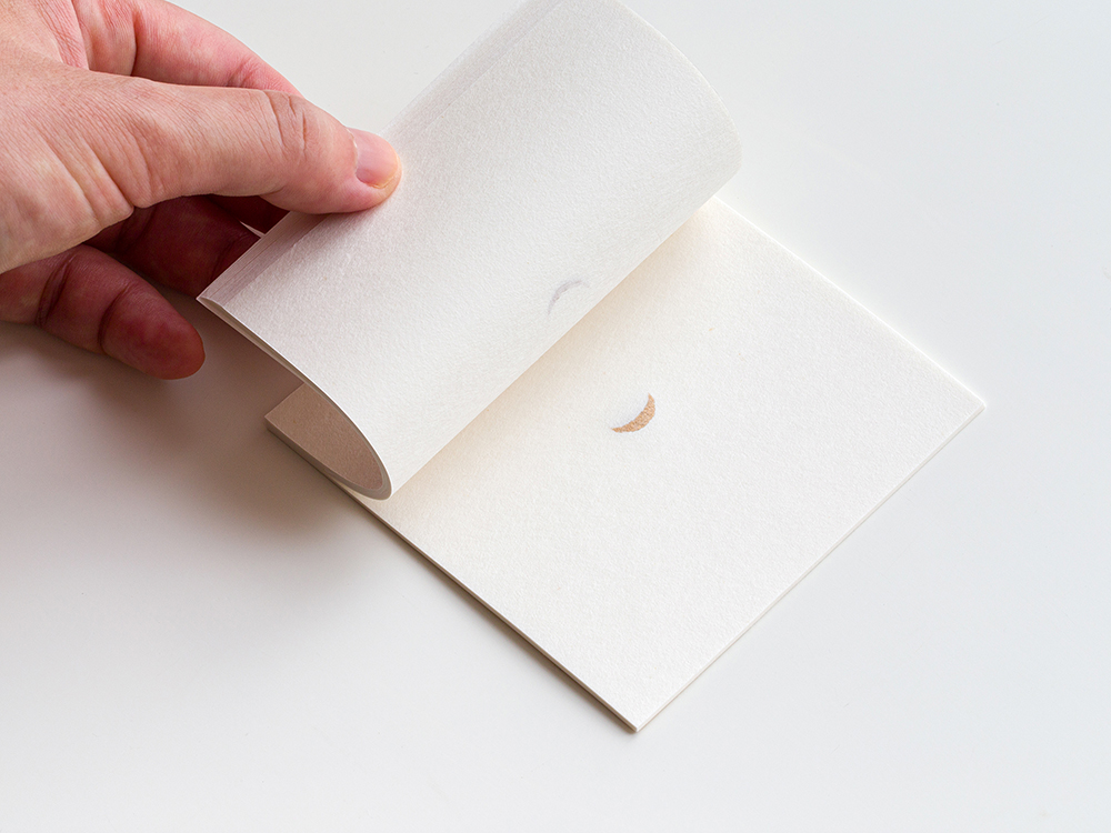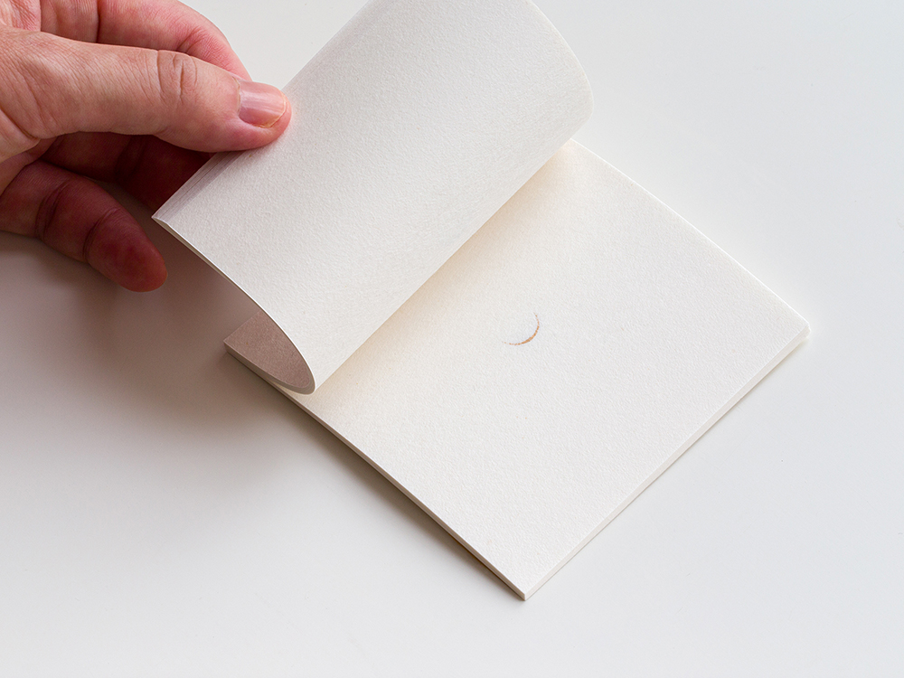 月の満ち欠けを小さな本にしたもの。古今東西、さまざまなかたちで表現されてきた地球共通の風景。手のひらのなかで刻々と姿を変えていく、消滅と再生のおはなし。