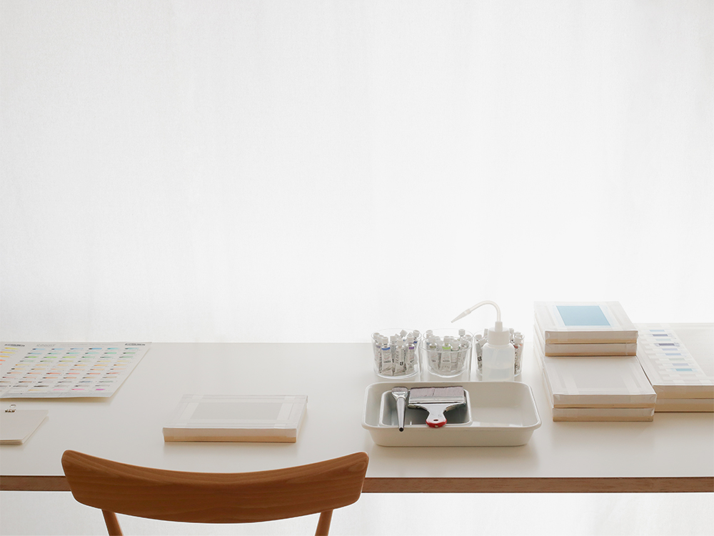 毎日、水彩絵具でその日の「海の風景」の色を作り、小さな紙に塗って日記のように記録している。目の前にはない広大な海を想う、絵の具で色を作る、紙にその色を載せる、そこにはその日の海のたたずまいがあるように感じる。風景とは何なのか、移り行く個人的な「海の風景」のアトラスを作る実験的な作品。